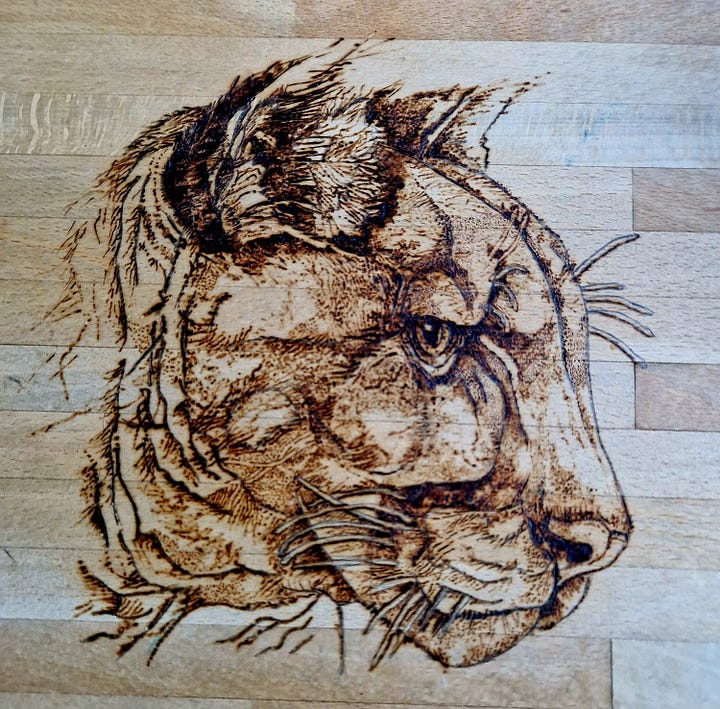 Afterwards I subscribed to Ju’s Substack and discovered the astonishing breadth of her creativity: her artwork, writing, music, and her own intricate pyrography.